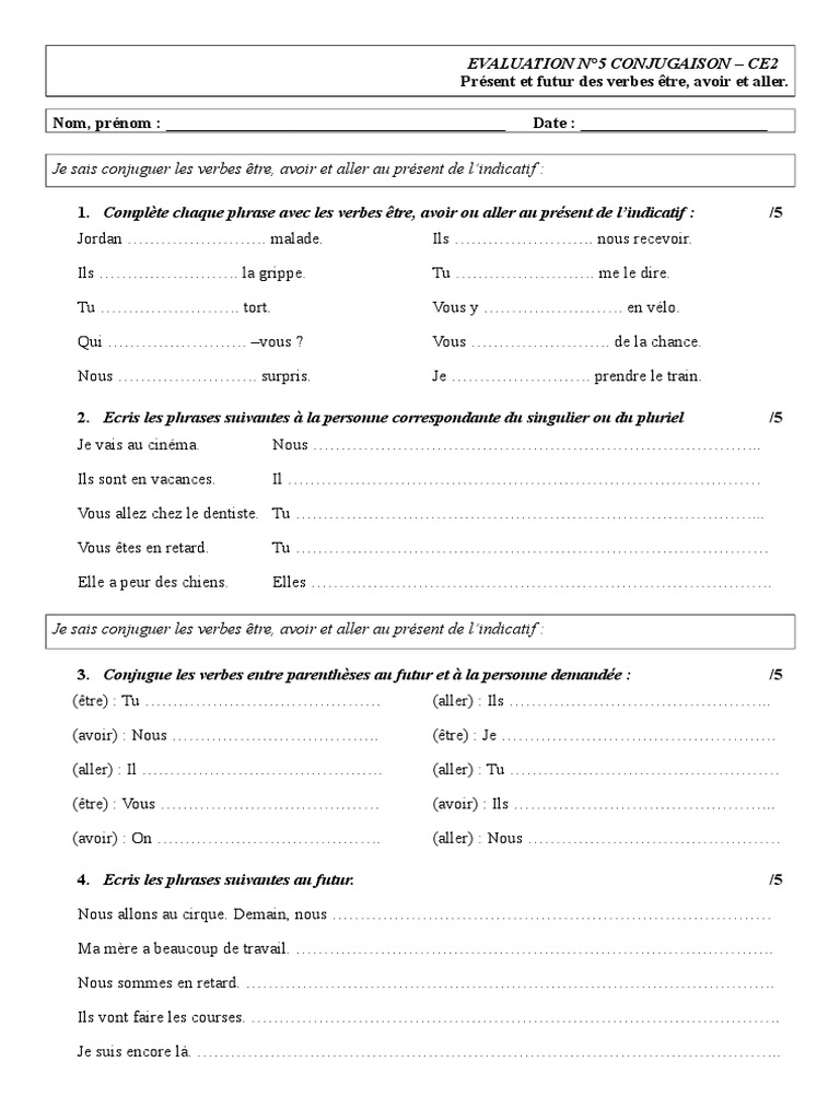 Exos Le présent des verbes être et avoirpdf. Nous proposons également en fin de page une série dexercices dévaluation sur le présent de l. Le futur des verbes être et avoir Compétences évaluées Identifier le verbe être et avoir.