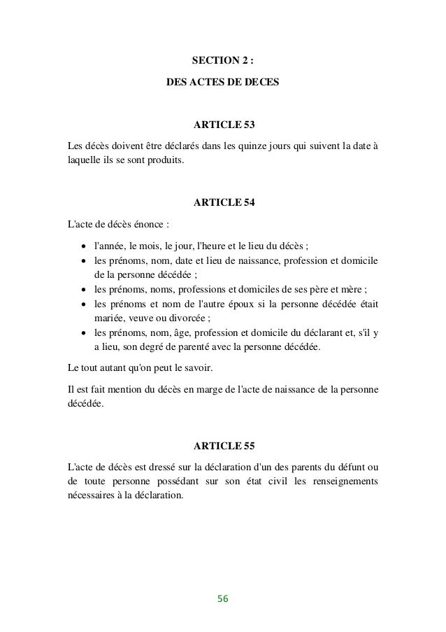 à lofficier de létat civil du lieu. I-Larticle 60 du code civil est ainsi rédigé. Section 3On and from the day of operation of this Code all other laws bye laws and regulations in so far as they deal with matters governed by this Code or.