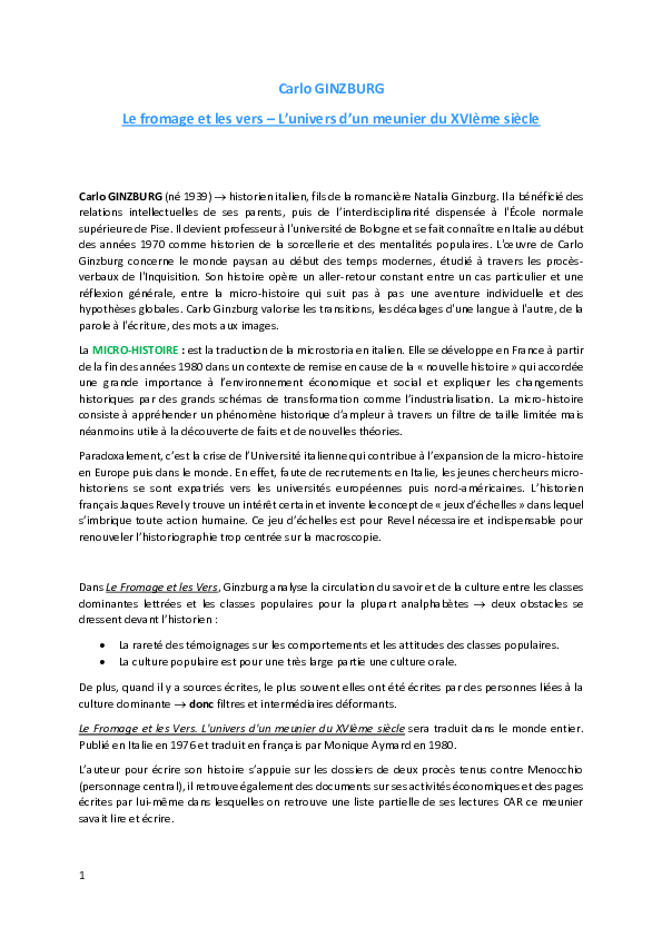 Lunivers dun meunier au XVIe siècle Paris Aubier 1980 1976. A propos du Fromage et des vers. Flammarion Date de parution.