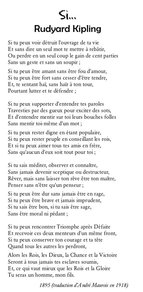 Egj בטוויטר Quand J Etais Enfant Mes Parents Avaient Encadre Dans Ma Chambre Le Poeme Si De Kipling Tu Seras Un Homme Mon Fils Ils Consideraient Qu Il Doit Etre